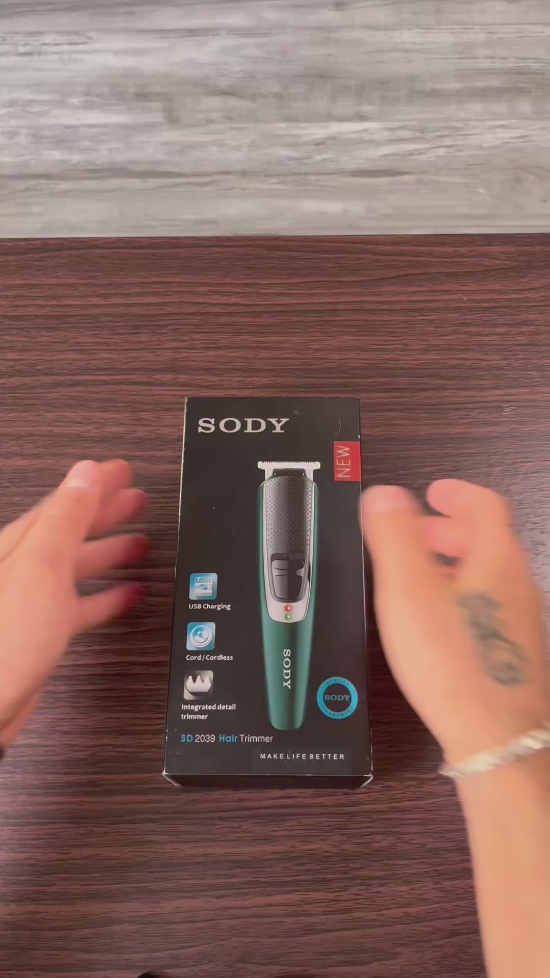 Den nya SD2039 kan användas både med sladd och trådlöst och kan laddas var som helst via en USB-kabel. Med de integrerade precisionstrimrarna ger apparaten tillfredsställelsen av en jämn klippning, med precisa konturer och perfekt finish på små detaljer.